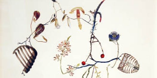 Alexis faz frases feitas a partir de colagens de desenhos da fauna, flora e anatomia humana