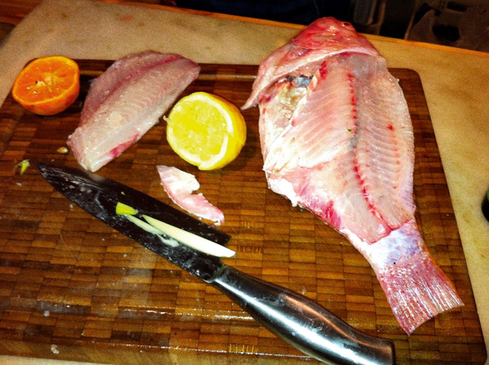 16:00 - "Dei uma aula para a turma de gastronomia do Instituto Capim Santo. Preparamos dois tipos de peixe." / Créditos: Arquivo Pessoal