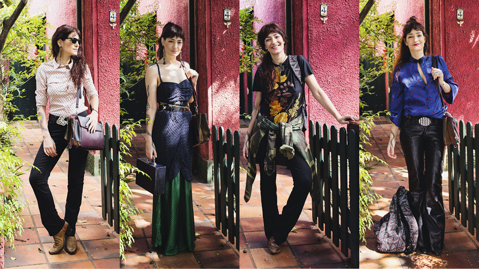 Hoje, sua paixão por cores, exagero, referências ao passado e a outras culturas é depositada na marca de bijuterias artesanais que leva seu nome. As peças são feitas à mão por ela mesma com materiais como cristal, couro e latão. A habilidade manual, ela conta, veio da avó, bordadeira das boas. Todas as bijuterias ao lado são de sua marca.