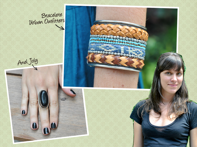 Marcela Paes, repórter do site da Tpm: “Estou sempre com esse anel e a pulseira uso nos dias em que estou com uma cor de roupa mais sóbria” / Créditos: Mayra Presotto