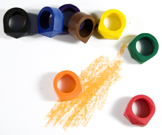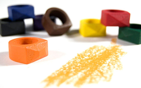 Se você é daquelas ansiosas que não aguenta esperar sem ter o que fazer, daquelas artistas que não pode ver um pedacinho de papel que já quer desenhar, daquelas esquecidas que tudo precisa tomar nota, mas não quer sair por aí carregando uma caixa de lápis de cor na bolsa, esse é o tipo de acessório que precisa ser seu. Os anéis projetados por Timothy Liles além de ser bonitos, ainda servem como crayons.