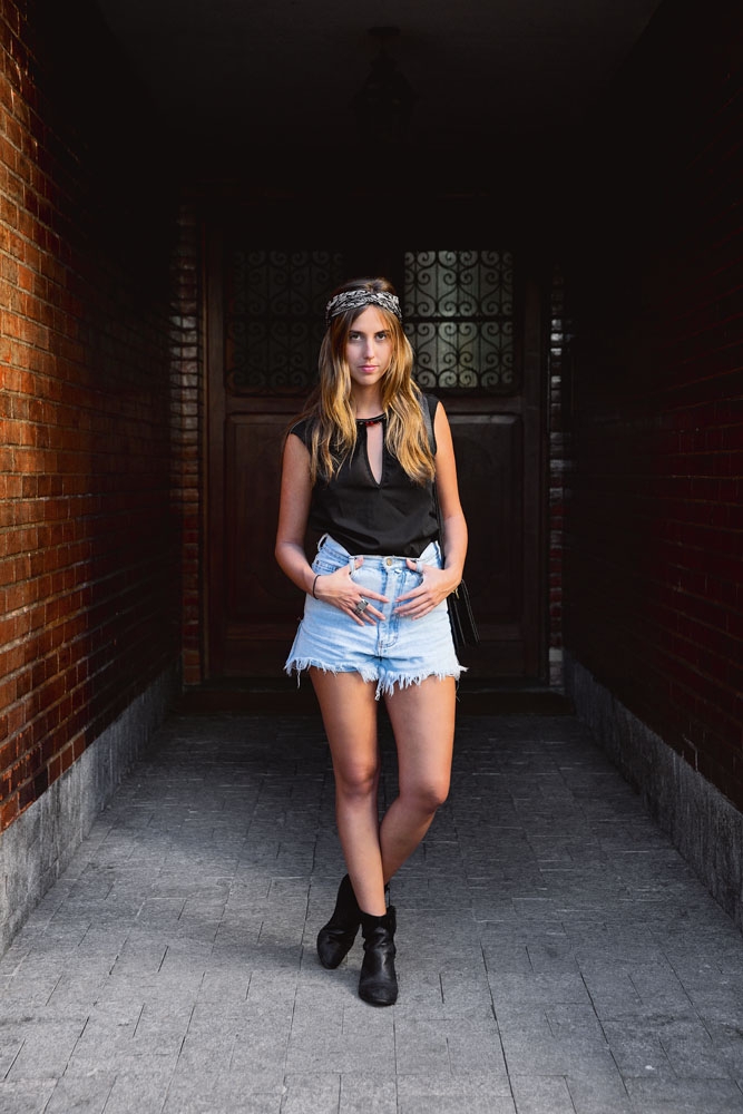 Quinta-feira 14h: “Direto do trabalho, ia encontrar com uns amigos no Baixo Gávea, e até a noite estava quente. Precisava botar uma roupa que funcionasse nas duas situações.” Short Lee - Top Aragem Rio - Bota Arezzo - Bolsa Kor Atelie - Lenço presente indiano do namorado / Créditos: Luiza Campos