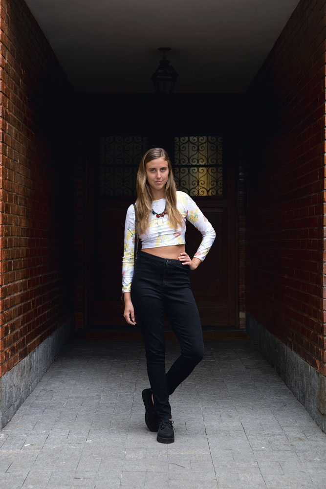 Sábado 16h: “Sábado saí cedo pra passar na galeria Comuna, onde fica minha loja, e depois engatar em alguma festa. Como ia passar o dia todo na rua, optei por um sapato que ficasse bonito no look e fosse confortável.” Top Aragem Rio - Calça Topshop - Colar Luiza Dias 111 - Creepper Melissa / Créditos: Luiza Campos