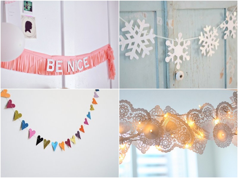 A proposta é fazê-las vocês mesmo, com o material que tiver. Vale retalhos de tecidos, papéis que estão sobrando, feltro ou juta. O formato também pode ser qualquer um: desenhos, silhuetas de animais e objetos, palavras ou frases inteiras. Basta um pedaço de linha, um punhado daqueles materiais escolares, como cola, tesoura, glitter, lápis, canetinha e vontade de exercitar a criatividade.