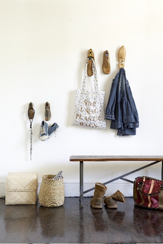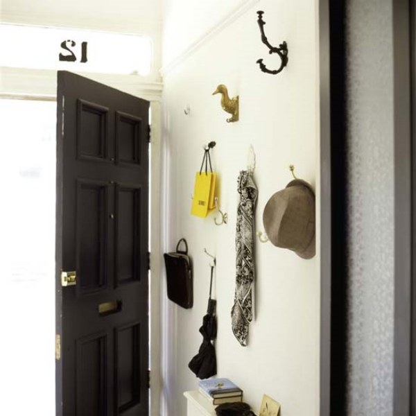 Pra começar, a idéia mais simples: é só escolher vários ganchos de diferentes modelos e prender 'aleatoriamente' no hall de entrada. Fácil, rápido e charmoso / Créditos: www.housetohome.co.uk