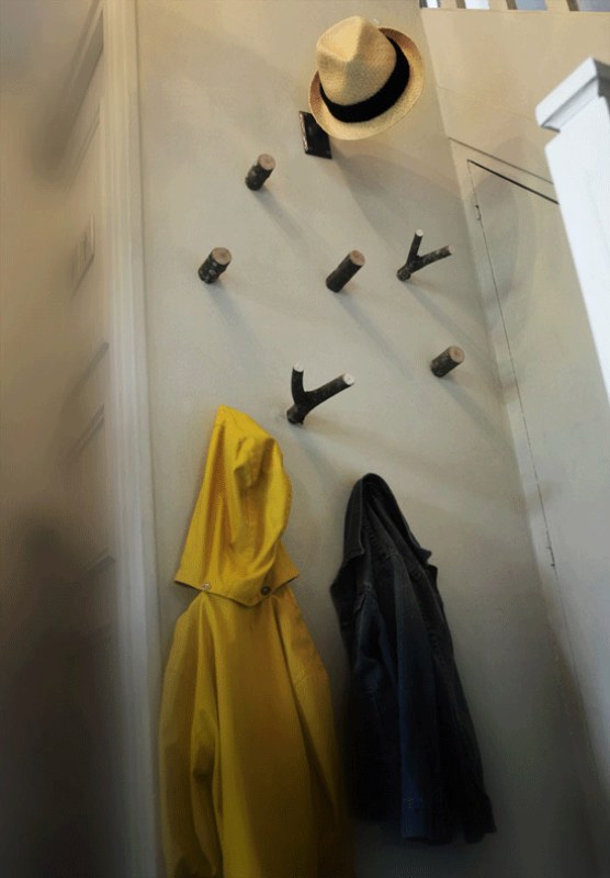 Com um pedaço de galho maior e mais grosso, é possível transformá-lo na base que vai receber os ganchos / Créditos: www.apartmenttherapy.com