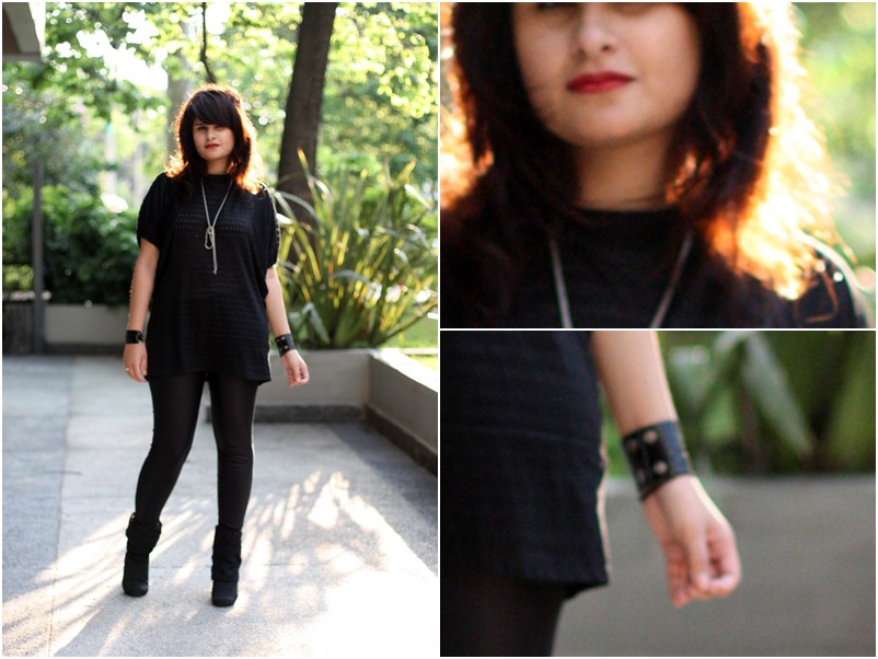 Quinta: "Tem gente que morre de vergonha de ir pro trabalho com a roupa da balada da noite anterior, mas eu não tô nem aí. Acho até divertido na verdade, e acabo ouvindo Glam Rock o dia todo pra entrar ainda mais no espírito. O vestido é uma camisa meio transparente que vi na Marisa há uns 5 anos, e acabei comprando no tamanho extra grande pra usá-la como vestido (sou dessas). A manga meio morcego e a transparência me lembram o glam do Blondie, e a combinação da legging com a bota é inspirada no Marc Bolan, vocalista do T.Rex. O cabelo é aquela bagunça de day after, então por favor, não reparem" - - Camisa Marisa - Legging American Apparel - Botas Forever 21 - Colar Virgin Again - Pulseiras são da época da adolescência, não lembro / Créditos: Mariana Hasselmann
