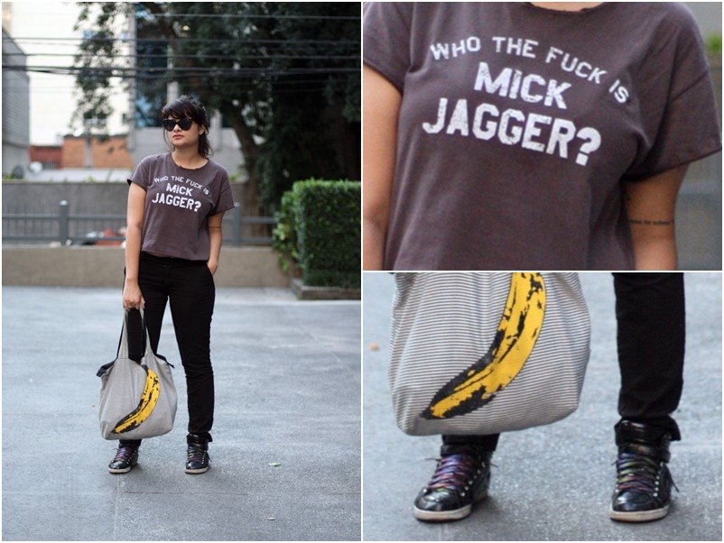 Segunda: "Segunda-feira é sempre aquele dia que eu acordo atrasada e cansada só de pensar na quantidade de coisas chatas que me aguardam. E como não posso deixar de cumprir as obrigações, pelo menos vou protestando. Me inspirei na música 'No Fun', dos Stooges, que tem tudo a ver com o espírito da coisa. A combinação tênis, jeans, camiseta de banda e cabelo preso com rabo de cavalo é confortável o suficiente pra encarar o dia" - Camiseta Fock Fashion - Bolsa SupercoolMarket - Calça Renner - Tênis Forever 21- Óculos Zara / Créditos: Mariana Hasselmann