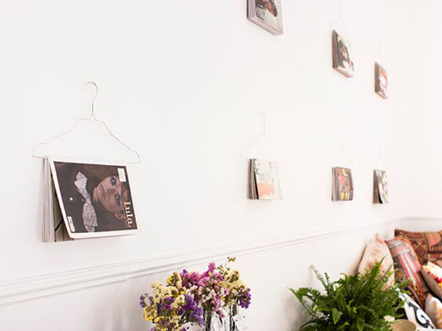 02. E pra expor aquela coleção de revistas legais, com capas incríveis, que você tem e que ficam num canto? Use aqueles cabides de roupa que estão sobrando / Créditos: Reprodução