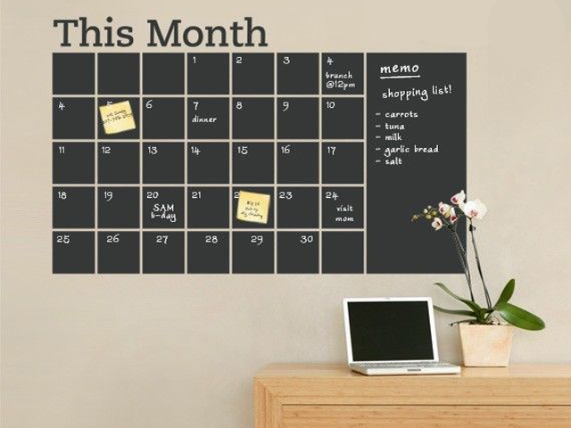 10. Tinta lousa e fita crepe são suficientes pra fazer uma agenda permanente pro seu home office. Pano úmido ou um tiquinho de álcool gel resolvem a limpeza / Créditos: Reprodução