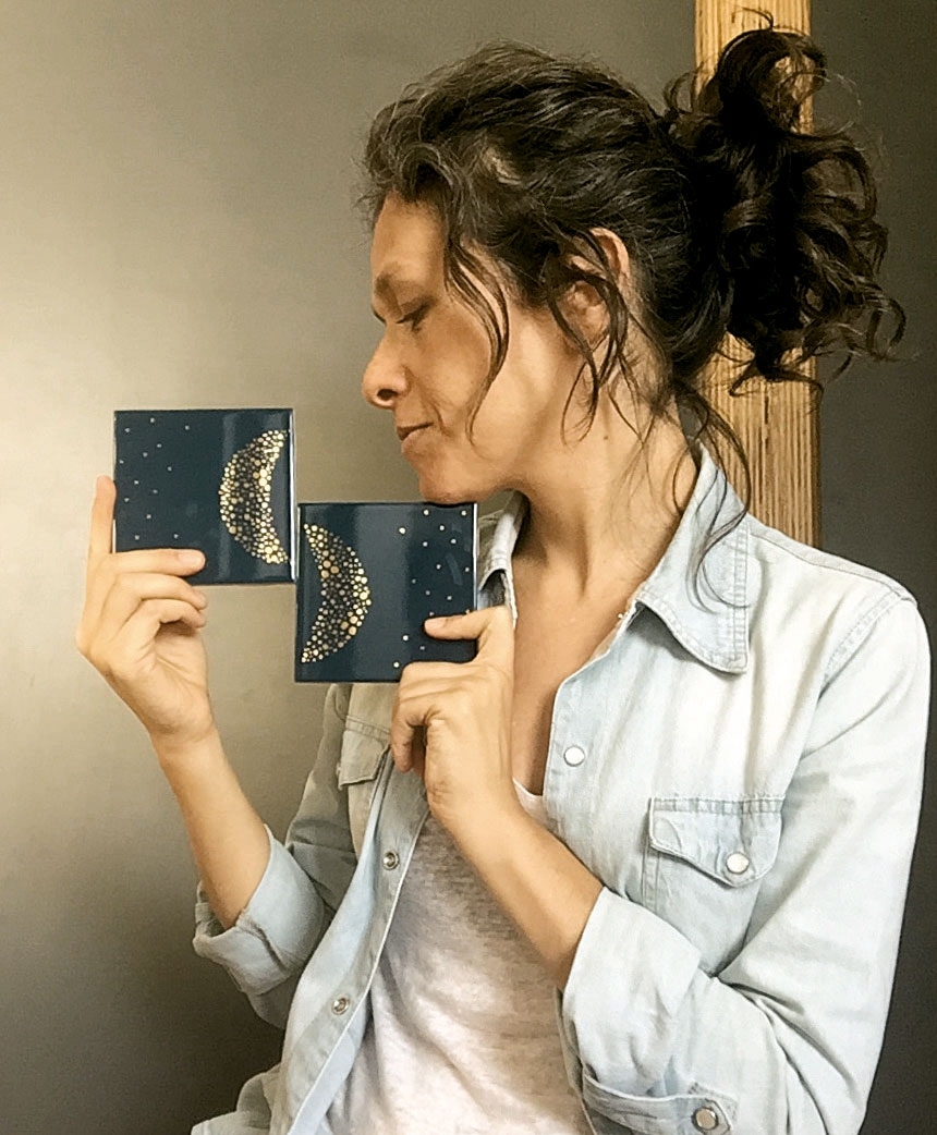 Cynthia também trabalha com cerâmica, tendo produzido uma série de ilustrações em azulejos. São as ilustras que inspiraram duas dessas coleções, Luas e Constelações, que você vê a partir da página 102. “Procuro olhar muito a natureza. Gosto também de perceber combinações de cores inusitadas. A harmonia e a desarmonia da mistura das cores.”