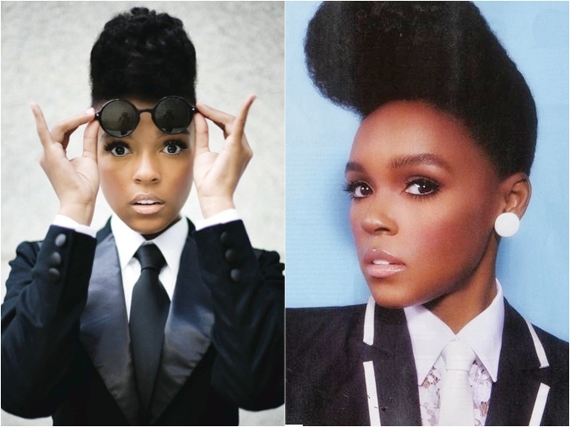 A cantora, compositora e bailarina Janelle Monáe, 27, é lembrada não só pela voz única, pelas inesquecíveis coreografias e pela carga vintage que traz em seu trabalho. Janelle leva pra vida a musicalidade que traz em suas apresentações. Influenciada pela música negra norte-americana dos anos 70, seu estilo de se vestir segue a mesma linha. O que faz suas produções se aproximarem sempre do visual de Michael Jackson e dos meninos do Jackson 5 – inclusive os penteados que usa. Referências da alfaiataria masculina da época, muito preto e branco, silhueta marcada e calças que deixam o tornozelo de fora são pontos fortes. Os acessórios também vêm do guarda-roupa masculino. Por isso chapéus são indispensáveis.