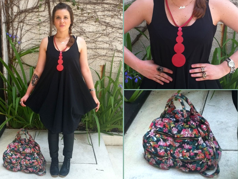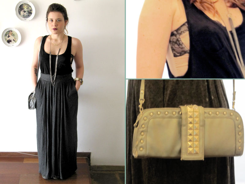 Quarta-feira: “Dia de ir para o trabalho e depois beber na Vila Madalena com as amigas! “Mafê usa vestido Uma, calça H&M, bolsa H&M, bota lojinha em Camdem, colar Uma, anel pedra da 25 de março, anel rebites comprado em Londres e anel coruja H&M