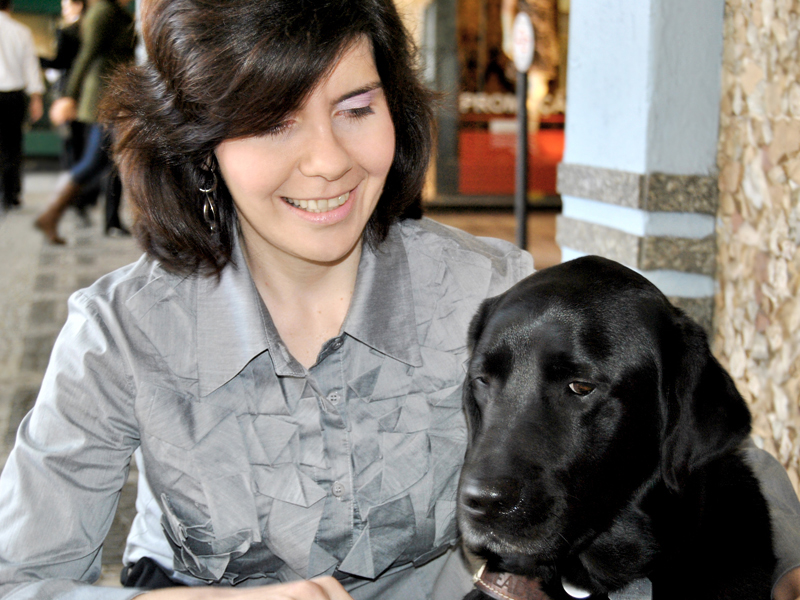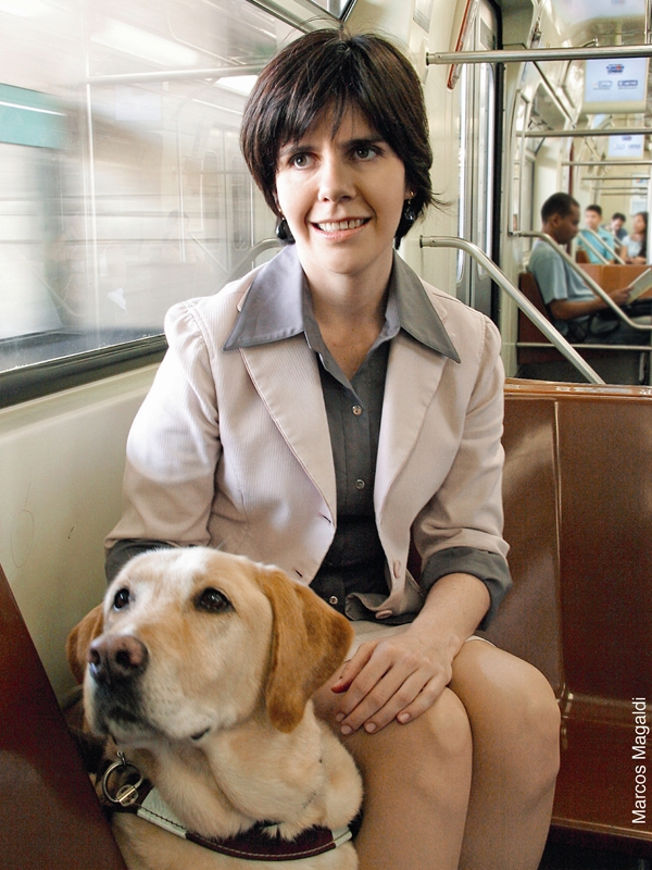 Os olhares dos frequentadores de uma livraria na região da Avenida Paulista, em São Paulo, se moveram para Diesel no mesmo instante em que ele entrou no espaço. Ele, um labrador de pêlo preto e quatro anos de idade, veio diretamente dos Estados Unidos para ser o óculos de Thays Martinez, 37. Ainda criança, a advogada que nasceu com a vista perfeita, sofreu uma caxumba que acabou acarretando no descolamento da retina em seus dois olhos. “Eu não tenho visão nenhuma, só tenho percepção de luz. Consigo saber se está claro ou escuro ou se tem sol ou não no dia. E minha única lembrança do tempo que enxergava são as cores”, explica.