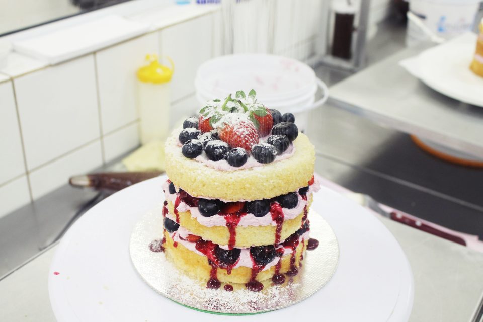 Naked cake de baunilha, recheado com frutas vermelhas e butter cream