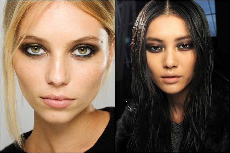 Sabe o olho preto esfumado? Ele tem uma versão digamos, um pouco inacabada, com cara de olho da noite de ontem mesmo. O efeito de maquiagem desbotada e borradinha foi usado em uma dezena de passarelas nas últimas semanas de moda. A ideia é fugir da perfeição e dos grafismos, usar poucos produtos e deixar a mão livre pra esfumar.