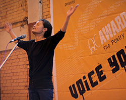 Poetry Slam é uma espécie de batalha de poesia em que os poetas recitam textos originais e são julgados por membros da audiência escolhidos por um MC (mestre de cerimônias). A melhor nota leva o prêmio da noite.