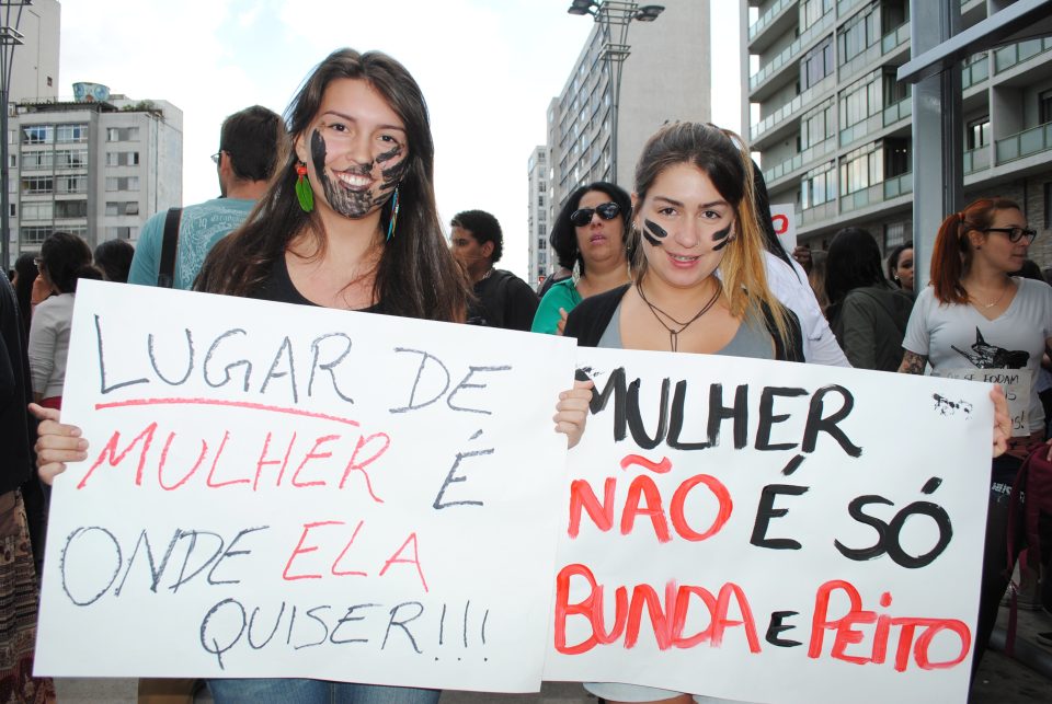 Mayara, Aline, Verena, Érika, Hana, Laíza, Katiuscia e Clara são alguns de seus nomes. E naquela tarde marchavam por suas histórias, e pelas histórias de Elisa Samudio, Maria da Penha, das índias guarani-kaiowá e da mesma psicóloga citada no começo deste texto. Nenhuma delas é imune à violência, seja ela sexual, física ou psicológica, todas as meninas abordadas pela reportagem da Tpm durante a marcha disseram que já foram vítimas de violência de cunho sexista. E entregaram: pensam duas vezes antes de escolher a roupa que vão vestir, justamente pra evitar abordagens indelicadas e por medo de estupro.