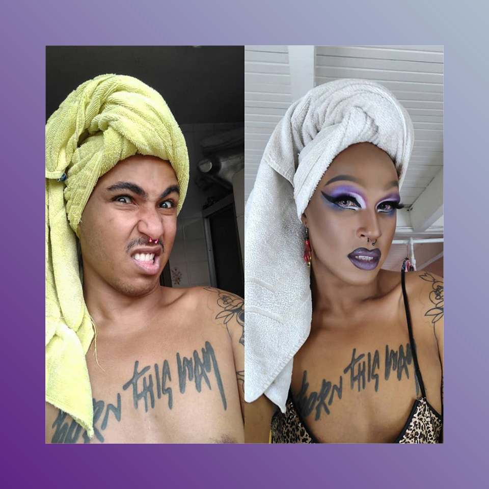 “Confesso que a quarentena está sendo tranquila. O lado bom, entre muitas aspas, é que consegui organizar tudo o que não tinha tempo, entre drag queen, estudante e recentemente, estagiário. Tive tempo. O lado ruim é a questão financeira, pois a drag queen era minha principal fonte de renda: produzo a festa HeteronormaDiva e faço promoção de eventos etc.