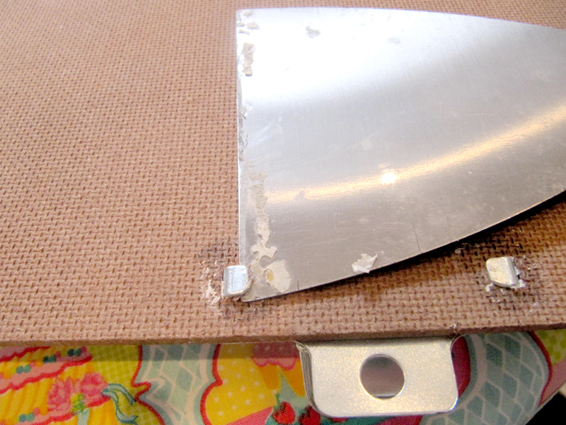 Com a ponta da tesoura, enfie no buraco onde vai o clipe da prancheta para que fique mais fácil de recolocá-la depois.