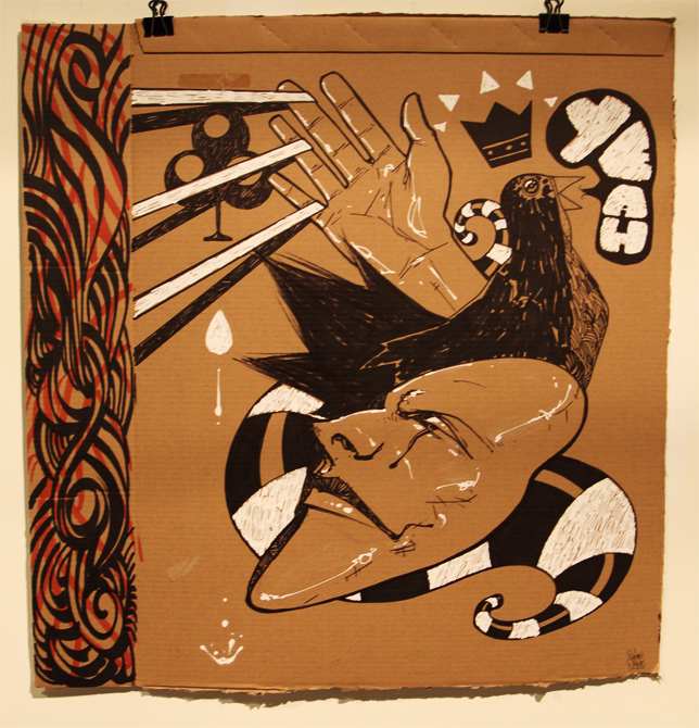 Parte da série é inédita e usa como base as caixas que ele trouxe na viagem de volta para casa. Com forte influência de HQs, desenhos animados e vídeo games, seus desenhos são feitos com tinta acrílica, lápis de cor e marcadores. “Sempre gostei de trabalhar com preto e branco e o papelão, pela cor marrom que tem, faz com que estas cores se destaquem”, diz. Formado em Design Gráfico e Publicidade, Dante trabalhou em diversas agências de publicidade até inaugurar o estúdio Surto, em São Paulo, focado em ilustrações. A mostra 2 Many Boxes fica no Garrafas Bar por duas semanas e também reúne prints e outras ilustras do artista.
