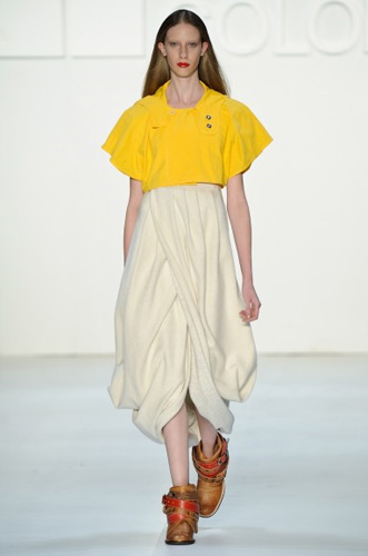 No desfile da grife British Colony o amarelo brilhou, e a lembrança da capa de chuva ficou bem perto do imaginário de todos.