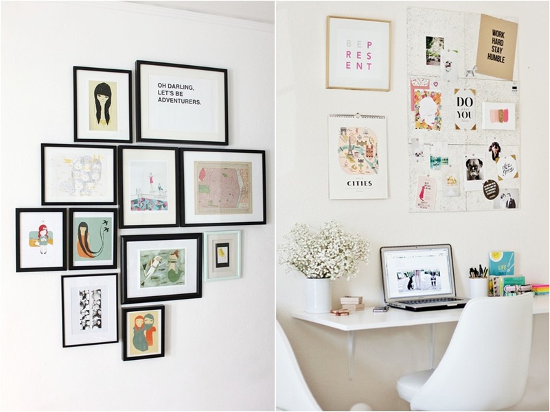 Quadros, quadrinhos e retratos. São mais tradicionais, mas só se você quiser que sejam. Neste caso não há limites pra criatividade. A graça fica na arte que você escolher para preencher as molduras. Pode ser um desenho seu, uma impressão de internet, uma foto antiga... / Créditos: Reprodução