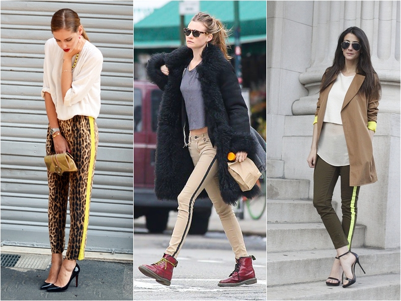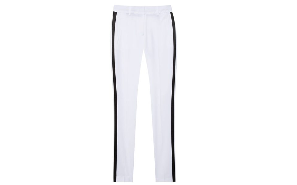 Tendência quente para o inverno, a calça tuxedo é aquela com apenas uma listra lateral, de largura média, lembrando as usadas nos trajes estilo black tie. Vista nas últimas coleções de moda – a grife francesa Balmain a resgatou, ao lado de outras criações com inspiração tuxedo – a graça fica por conta de misturá-la a peças esportivas e mais urbanas, quebrando a seriedade da alfaiataria.