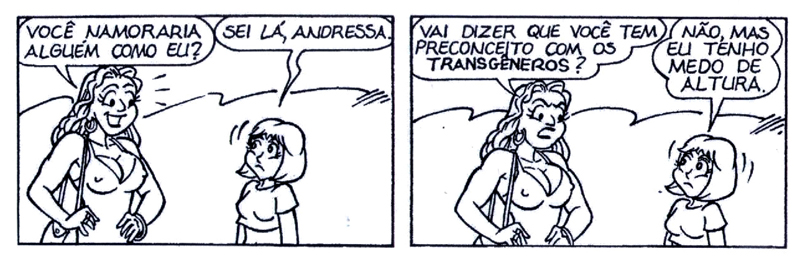 Em comemoração à data, fiz um post especial no Mina de HQ com algumas tirinhas que tratam da temática lésbica. E fiquei pensando que, se as mulheres de maneira geral lutam por mais espaço nos quadrinhos, fica ainda muito difícil ver personagens lésbicas nas HQs mainstream. Elas acabam ficando restritas a uma interpretação muitas vezes masculina em histórias de autores consagrados (como nas tiras de Luke e Tantra, do cartunista Angeli) ou à produção underground.
