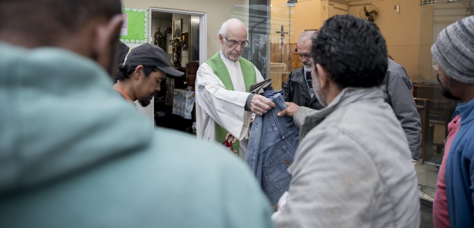 Padre Júlio é um dos homenageados do Trip Transformadores 2018. Durante suas missas, fiéis dividem os bancos com tipos mais heterogêneos e, aos poucos, mais pessoas vão chegando, dentro e fora da igreja, onde moradores de rua buscam roupas, sapatos, cuecas, alimentos, cobertores e o que mais puderem ter.