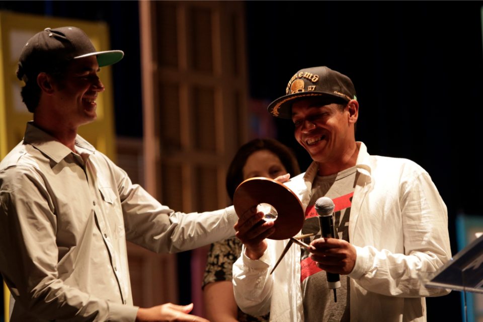 Burnquist se disse fã de Testinha, “ele transformou o skate numa ferramenta de inclusão social”, e chamou o amigo ao palco. Em um discurso emocionante, que arrancou lágrimas e sorrisos de boa parte da plateia, Testinha agradeceu o prêmio ao seu pai, a esposa e citou nominalmente cada uma de suas professoras favoritas do Ensino Fundamental. Ele lembrou também da primeira vez em que viu um skate e se encantou pelo esporte. Foi em uma lendária Overall, revista de skate editada pela Trip nos anos 80. E ainda aproveitou para lembrar o amigo e músico santista Chorão, falecido este ano: “Não posso esquecer de agradecer um brother que correu essa história toda com a gente, que usou seu talento e as chances que um artista tem, para ajudar divulgar nosso trabalho: Alexandre Magno Abraão”, sob palmas emocionadas da plateia.