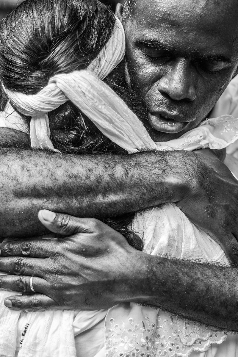 Em julho deste ano, Cipó inaugurou a exposição AFÉTO, com curadoria de Marco Antonio Teobaldo, na Galeria Pretos Novos de Arte Contemporânea, no Rio de Janeiro. Em sua primeira mostra individual [reunimos algumas imagens na galeria no final deste texto], dentro da programação do Festival Internacional de Fotografia – FotoRIO, o fotógrafo registrou as relações de afeto constituídas dentro dos terreiros de candomblé, a partir de sua experiência como iniciado na religião. “AFÉTO é um reflexo do que eu tenho experienciado e observado nos terreiros de candomblé de mais de 30 cidades de São Paulo e do Rio de Janeiro”, conta Cipó, que tem como sua casa o Asè Iya G’unté, onde é Alagbé — homem responsável por conduzir a orquestra de atabaques que invoca os orixás.
