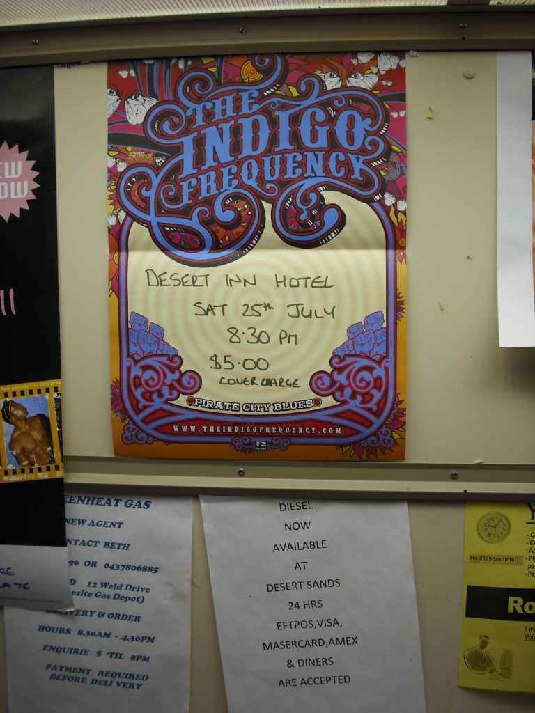 Então, depois de quase um ano morando em Sydney, o máximo que eu tinha conseguido era tocar em uma banda de reggae chamada “Ziggy and the Wild Drums”. Um belo dia, um cara me liga, perguntando se eu não estava interessado em tocar em uma banda que estava indo excursionar por seis meses no oeste da Austrália. Funciona assim: nós temos uma agente que mora em Perth, capital de WA (Western Australia). Ela marca os shows e a gente vai! Somos em quatro: eu, um baixista, um guitarrista/cantor e a mulher dele. Viajamos em duas vans: eu e o baixista em uma, o cantor e a mulher na outra. Tocamos em média 3 vezes por semana, geralmente no mesmo local/cidade, quando temos comida e acomodação inclusa. Nos outros dias estamos viajando, para chegar ao próximo “destino”. Dormimos na van em média 4 noites por semana e acampamos no deserto. Wa é o maior estado em extensão da Austrália, equivalente a 1/3 do seu território. A população, porém, é de apenas 10%. Ou seja: é muito espaço e pouca gente. Diante disso, temos que viajar grandes distâncias para chegar ao local dos próximos shows. As vezes isso chega a mais de mil km, que costumamos dividir em dois ou três dias de viagem. A gente viaja para onde o dinheiro esta! WA vive basicamente da extração de minérios e pedras preciosas. Por isso, existem muitas minas por aqui. E minas pagam bem! É claro que, no meio disso, tocamos em pubs, barzinhos, etc, etc. Mas muito frequentemente vamos a estas “minas”. São locais no meio do nada, onde são construídos pequenos “vilarejos” para abrigar os trabalhadores. Trata-se de uma infra-estrutura básica para que as pessoas possam morar e trabalhar. E é nestes lugares que a gente toca! Pouquíssimas bandas tem a “coragem” de fazer isso, pois, como se pode imaginar, são áreas muito remotas, de difícil acesso. Tocamos em diversos locais de predominância aborígene, onde eles são “maioria”. Trata-se de um povo extremamente pacífico que, infelizmente, está tendo que engolir a cultura ocidental na marra. Devido a esta “adaptação” forçada, vivem a margem da sociedade, frequentemente com sérios problemas de drogas e alcolismo. A Austrália tem apenas 200 anos. Esse povo ficou quase 80 mil anos sem nenhum contato com o “homem branco”. Agora, infelizmente, sofre as consequências de ter que engolir tudo isso. No momento, estamos “estacionados” em uma cidade mineiradora chamara Kalgoorlie. Trata-se, segundo consta, da maior mina de ouro do hemisfério sul. Recentemente estive lá para conferir: é realmente assustador. Moro no andar de cima de um pub (que costumava funcionar como um hotel) e tenho um quarto só pra mim! O pub chama-se The Rock Inn e está prestes a comemorar 110 anos de idade. Provavelmente a mesma idade da mina de ouro.