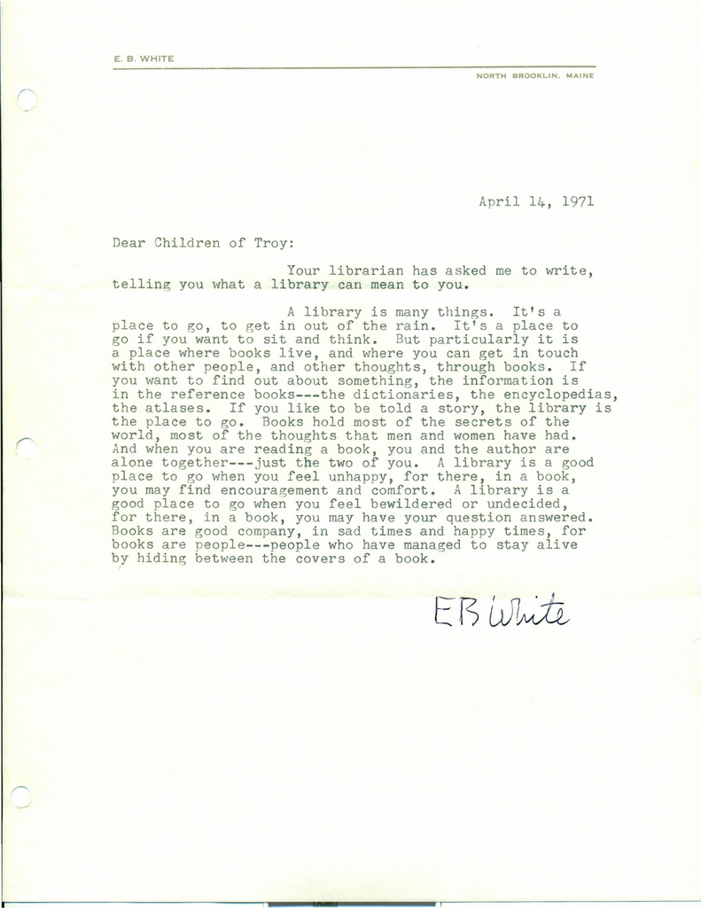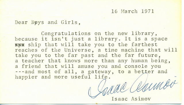 Em 1971, às vésperas da inauguração da primeira biblioteca pública em Troy, um pequeno subúrbio (hoje com 80 mil habitantes) nos arredores de Detroit, a bibliotecária local Marguerite Hart decidiu fazer um pedido para dezenas de personagens influentes daquele início de década. Ela foi atrás de políticos, escritores, músicos e figuras célebres da época solicitando que cada um escrevesse uma carta para as crianças da cidade falando sobre a importância das bibliotecas.