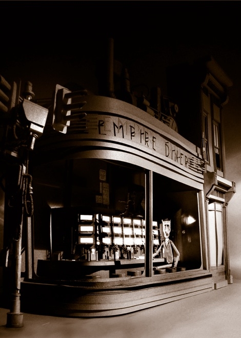Daniel Agdag é um artista multimídia com certo renome entre a nova geração da arte australiana. Escultor e cineasta baseado em Melbourne, ele estreia nesse mês a sua mais nova exposição solo, Sets For a Film I’ll Never Make, na Off The Kerb Gallery de Melbourne, onde exibe suas impressionantes esculturas de papelão entre os dias 26 de outubro e 9 de novembro. E sua obra mais impressionante é justamente a série exposta neste mês, onde ele constrói miniaturas de papelão com ideias de sets de filmagens inspirados na estética cinematogrpafica da primeira metade do século XX.