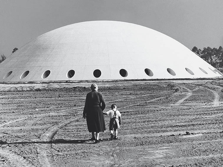 Foto 2) Avó e neto diante de uma já erguida Oca, em um Parque do Ibirapuera ainda em construção – “Captura um momento que antecede o caos que são paulo se tornou, mas já indicando o caminho da metrópole” Iatã Cannabrava