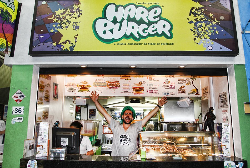 O resultado foi o Hareburger, fast-food saudável de hambúrgueres 100% vegetarianos vendidos no Posto 9 da praia de Ipanema. Segundo ele, hare vem da tradição Hare Krishna e significa “energia do amor”. Nas palavras de Rapha, “foi a junção de estrelas mágicas e do cosmos galático que deram o estalo inicial para o negócio”.