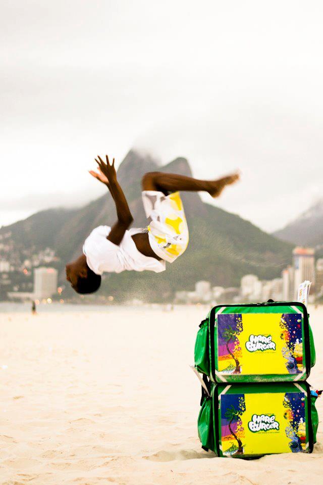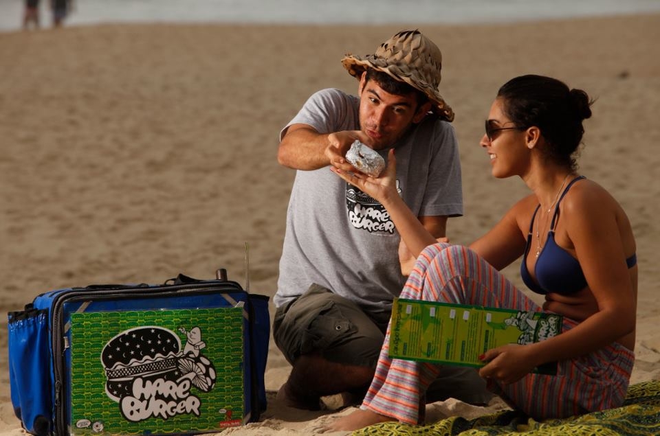 No cardápio “interestelar” constam receitas que levam pão, hambúrguer de soja e acompanhamentos como “cheddar alucinante” e “tomates psicodélicos”. O negócio começou com R$ 50 emprestados da avó e o garoto de cesta no braço e flauta nos lábios para atrair a atenção do público nas areias.