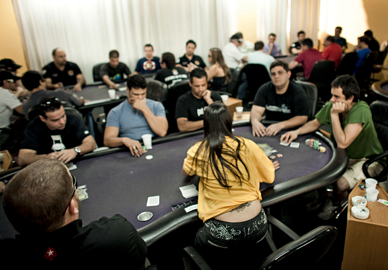 Os jogadores vão sendo desclassificados. Meia dúzia se reúne na salinha, pra continuar jogando. Dos 40, há apenas uma mulher no torneio. Ao ser abordada pela Trip, responde: “Sou tímida, fale com meu namorado”. Suas mãos, bonitas, tremem enquanto joga. Ela termina na 14ª posição. Sai da mesa, constrangida, e recebe olhares de escanteio. Enfim, chega outra mulher. É a esposa de Marky, aquela que não aceitava a atividade do marido. Durante uma hora, permanece a seu lado, jogando pôquer no celular. Então levanta, resignada, e vai embora.