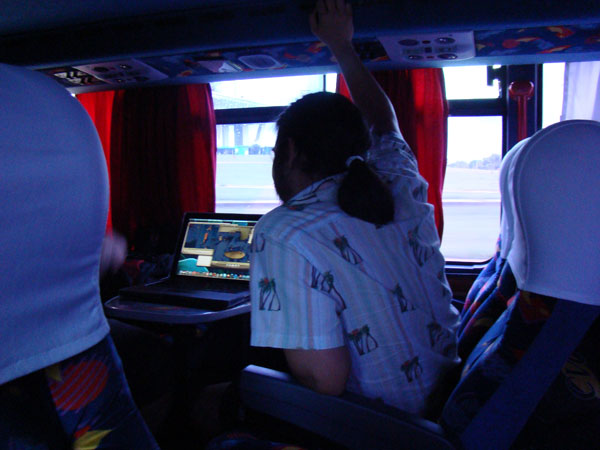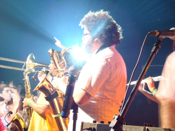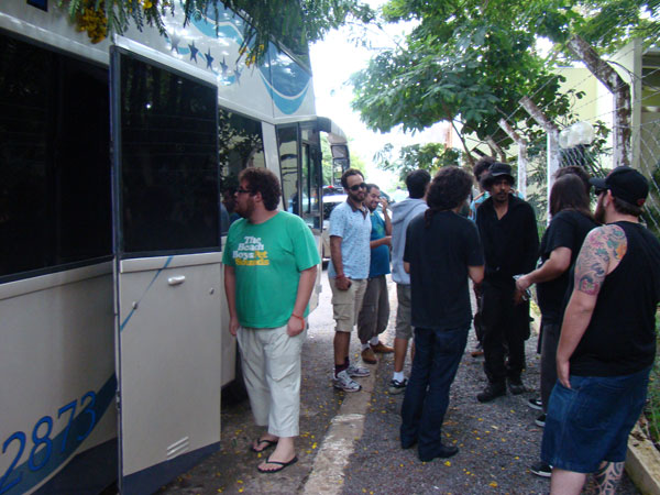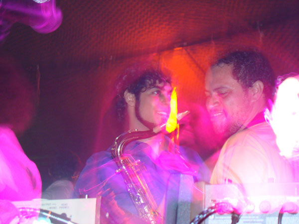 “Cara, isso aqui está uma loucura. Está sendo a edição em que mais pessoas da banda estão envolvidas na produção”, diz Fabrício Ofuji, integrante do Móveis. O grupo é formado por André Gonzáles (voz), BC (guitarra), Beto Mejía (flauta transversal), Eduardo Borém (gaita cromática, escaleta e teclados), Esdras Nogueira (sax barítono), Fabio Pedroza (baixo), Paulo Rogério (sax tenor), Gabriel Coaracy (bateria) e Xande Bursztyn (trombone). Qual dos oito instrumentos musicais do grupo Ofuji toca? Nenhum. Ele organiza, coordena, planeja e administra a empresa/banda Móveis Coloniais. Depois das poucas palavras, o samurai candango corre para o backstage. Enquanto isso, o Black Drawing Shalks (GO), um dos convidados da noite, se acabava no palco sob os olhares atentos do vocalista do Móveis, André Gonzáles, que acompanhava tudo da mesa de som.