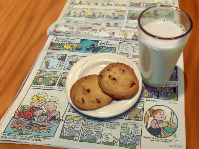 As pinturas são tão boas que despertam o sentimento de nostalgia mesmo nas pessoas que não tiveram contato direto com as peças retratadas. Nas composições, copos de refrigerante dividem espaço com edições clássicas do Superman, Homem-Aranha, Mulher-Maravilha, Batman e até de páginas de tiras de jornais.