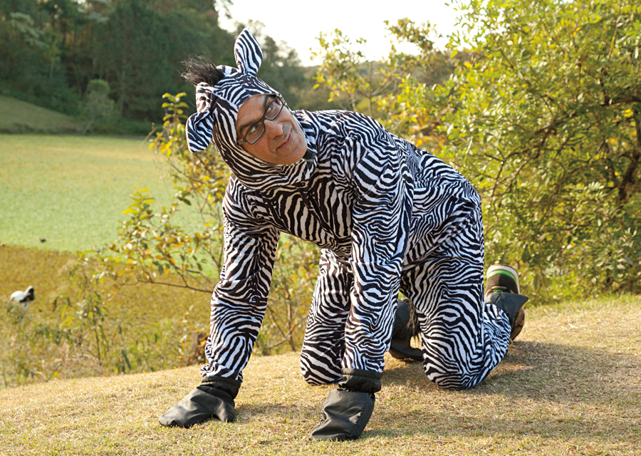 “O homem é a zebra do homem” – filosofa enquanto alterna-se entre bípede e quadrúpede / Créditos: Nelson Mello
