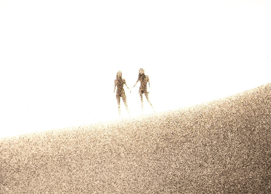 Elas enviavam tais canções de um sítio em Mangaratiba, no litoral fluminense, entre o mar e a montanha, onde viviam com o fotógrafo Luiz Fernando Borges da Fonseca. Ele é o responsável pelas fotos da mitológica capa de Água do céu – Pássaro (1975), o primeiro álbum pós-Secos & Molhados de Ney. Nelas, o cantor aparece feito homem de Neanderthal, nu a não ser por minúscula tanga, penas indígenas e chifres animais. É de Luiz também a capa sutil de Luhli & Lucina (1979). Nessa, aparecem ao longe, unidas pelas cabeças, as silhuetas apenas sugeridas de duas mulheres nuas. Com os Secos & Molhados ou solo, Ney expunha para o mundo uma versão exuberante de algo que Luhli & Lucina & Luiz também viviam, para dentro, introspectivamente.