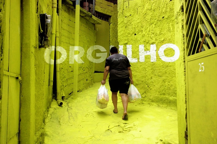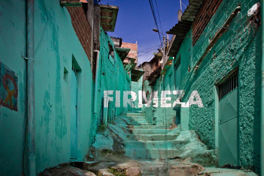 Escrevendo palavras em grande escala, os artistas desenharam os “lemas” usando a noção de profundidade das estreitas ruas da favela. Com isso, é preciso olhar para as pinturas de um ponto de vista determinado para conseguir ver toda a composição, que utiliza substantivos como “amor”, “orgulho” e “firmeza”.