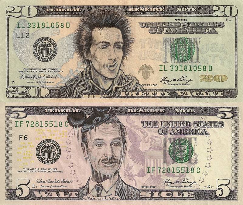 Começou neste fim de semana, na cidade de São Francisco, a mostra American Iconomics, que compila dezenas de trabalhos do criativo ilustrador James Charles. Ele é especialista em manipulação monetária e criador de belos desenhos pintados sobre notas de dólares americanos que trazem os mais diversos personagens da cultura pop, da arte, da televisão e da política, entre europeus, sulamericanos e norteamericanos.