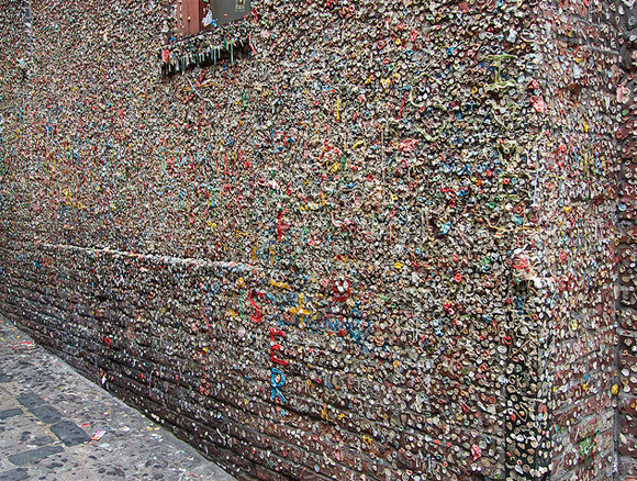 Se você é daqueles que, escondidinho, gruda um chiclete em algum lugar não autorizado, nessa parede em Post Alley, na cidade de Seattle, não precisa se sentir culpado.