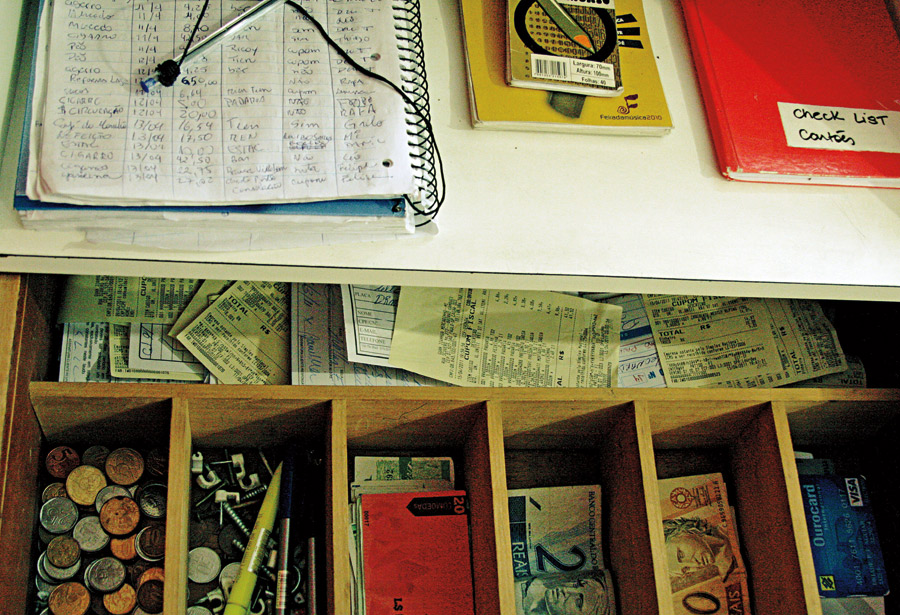 Nem Pablo Capilé nem nenhum de seus colegas que trabalham diretamente no Fora do Eixo tem um salário. Vinte e oito pessoas têm a senha do cartão do banco e podem utilizá-lo livremente para suas despesas pessoais. Tudo que precisam fazer é discriminar e justificar o gasto. Em resumo: se você entra e trabalha para o Fora do Eixo, você tem todas suas despesas pagas. E esse tipo de remuneração é seguido por até 2 mil pessoas pelo país nos coletivos ligados ao circuito. A medida são o bom-senso e a dedicação de cada um. “Se eu quiser eu posso ir à loja e comprar um Nike”, Capilé elabora, “mas depois eu vou ter que contar por que eu preciso de um Nike se meu colega está usando um Conga…” Isso explica por que a maioria por ali se veste de maneira bem modesta, vive em quartos quase sem adornos, mas carrega iPhones 4 e Macbooks de última linha.
