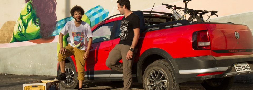 “Um dos grandes prazeres de pedalar é conseguir ver o mundo mais de perto”, diz o mountain biker Arturo Vieira. O grafiteiro Felipe Primat pega carona no assunto: “Foram minhas andanças em busca de muros pra colorir que me apresentaram a cidade”. Cada um vindo de seu mundo, Arturo e Primat se conheceram numa manhã de Sol no bairro de Pinheiros, zona oeste de São Paulo. Enquanto colocavam as bicicletas e os sprays na caçamba da nova Saveiro Cross, conversaram sobre a programação do dia. A ideia é que Arturo se arrisque no grafite. Para Primat, o desafio será uma pedalada pelas trilhas da Aldeia da Serra, pedacinho off road a 1 hora de São Paulo.