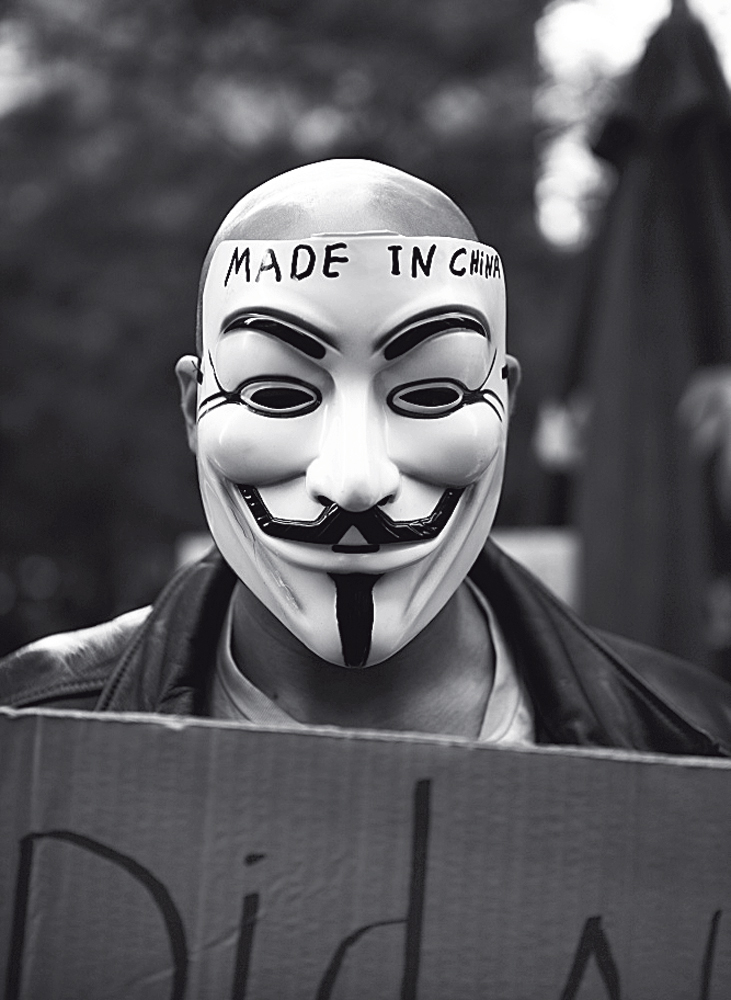 Fawkes virou ícone pop nos anos 1980, quando David Llyod e Alan Moore criaram a série de HQ que originou o filme – o personagem rebelde V usava a máscara com o rosto de Fawkes. Por volta de 2008, ela teria sido usada pela primeira vez pelo Anonymous, para depois virar habituée em todas as ações do grupo – e em vários outros protestos mundo afora. Ironia da vida: o desenho da máscara é propriedade da Time Warner, dona da DC Comics, uma das cem maiores empresas dos EUA.