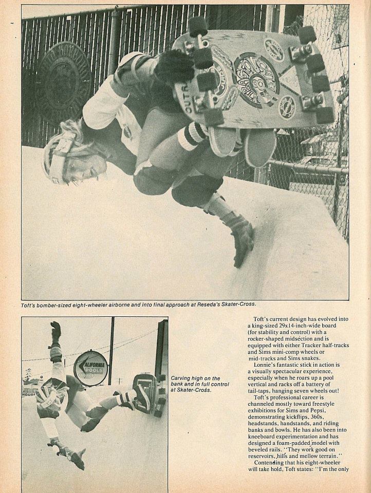 Em 1976, o skate já havia estabelecido sua segunda onda de popularidade e começava a evoluir a passos largos. Na época, já existiam torneios profissionais em vários países e o carrinho se tornava cada vez mais radical, cortesia dos Z-Boys e da nata do skate californiano que invadiu as piscinas vazias do estado e passou, literalmente, a alçar vôos mais altos do que nunca. Nesse panorama de incerteza e evolução do esporte, surgiu Lonnie Toft, que viria a ser reconhecido posteriormente como o mago das oito rodas.